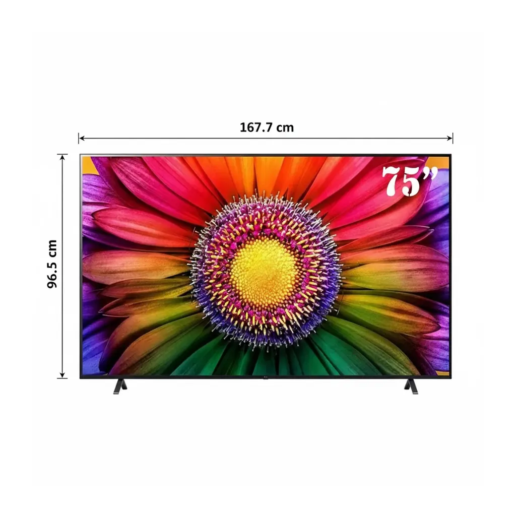 تلویزیون 75UR80006LJ با وضوح 4K UHD، جزئیات بیشتری نسبت به کیفیتهای پایینتر ارائه میدهد. پردازنده α5 نسل ششم (Gen6) محتوای غیر 4K را ارتقا میدهد و فناوریهای پیشرفته مانند HDR10/HLG این امکان را میدهند تا رنگها زندهتر و روشنایی بهتر شوند. اگرچه نرخ نوسازی 50/60 هرتز است (نه 120 هرتز)، برای تماشای فیلم، سریال، ورزش و استفاده خانگی بسیار مناسب است و اندازه ۷۵ اینچ تجربهای عظیم در محیط نشیمن فراهم میکند.