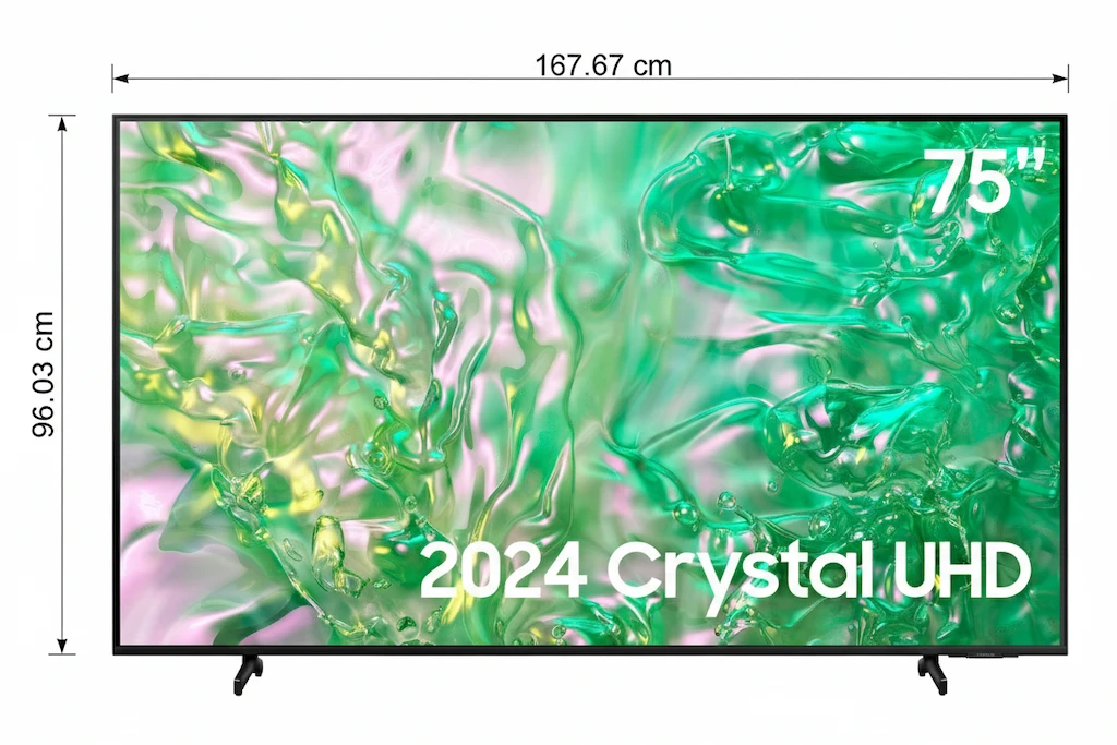 تلویزیون Samsung 75DU8000D دارای طراحی باریک و مدرن است که با هر دکوراسیون داخلی هماهنگ میشود. حاشیههای نازک و پایههای محکم، ظاهری شیک و جذاب به آن بخشیدهاند. این تلویزیون همچنین قابلیت نصب روی دیوار را دارد، بنابراین میتوانید آن را به راحتی در فضای خانه خود نصب کنید.